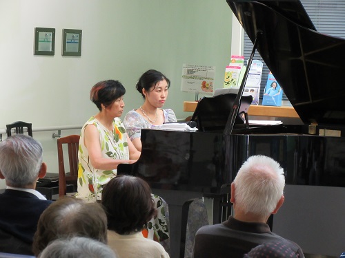今回のミニコンサートは通算10回目のご出演となります、ピアニストの新かほり様と上ヶ原病院理事長 大江与喜子の連弾でした。30分という時間の中で、なだらかな曲調のものから、疾走感のあるものまで幅広く演奏して下さいました。「ミスを新さんが上手にフォローしてくれた。」と理事長の口から聞くまでミスに気がつきませんでした。それほど息の合った連弾を奏でてくださいました。