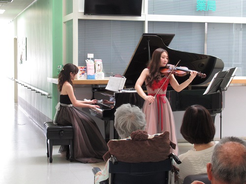今回のミニコンサートは、ヴァイオリンの柴田 夏未様とピアノの梶 愛未様にお越し頂きました。柴田様は3人組アーティスト「peer」のメンバーの一員としてこれまでに3回ご出演頂いており、今回が2013年11月以来約4年半ぶりのご出演、梶様は今回が初めてのご出演となりました。