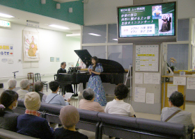 観客の皆さんはコンサートが始まると六車さんの歌声に合わせて口ずさむ等、ノリノリ でした。金子さんの優しいピアノの音色と六車さんの心のこもった歌声に最後まで包まれた 温かいコンサートでした。