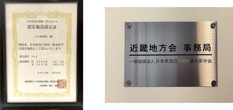 上ヶ原病院HBO室は日本高気圧潜水医学会近畿地方会の事務局も兼ねており、近畿地方における高気圧酸素治療の普及・発展等への取り組みも行っています。