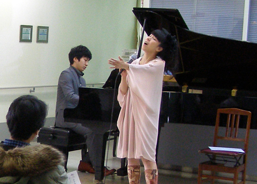 関西を拠点にジャズシンガーとしてご活躍中の溝口様。有田様伴奏のピアノ演奏でパワーある歌声が病院内に響き、