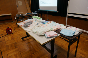 まずは排泄の機能がどうなっているのか?クイズ形式で確認しました。男女の違い、大きいんですね。また、排泄ケアの話の一環で様々なオムツの紹介をさせていただきました。その中で、今は完全自動で排泄を介助する機械もあるとのことで、みなさんびっくりされていました。