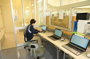 A君:「ついでにこちらがスタッフルームです。正直手狭ですが、その分スタッフ間の距離は近く仕事の話しはもちろん雑談も弾みます。ちょっと見せられないものもあるので小さい写真にして一部隠してます。実際の姿が見れるのは見学に来ていただいた方の特典です(笑)」