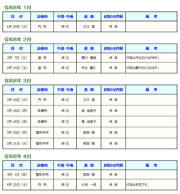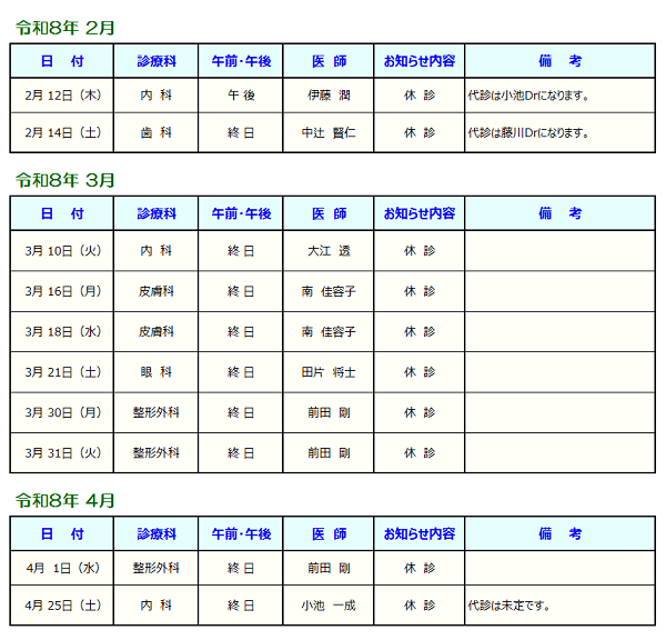 ※緊急で休診となる場合がございます事を、予めご了承願います。