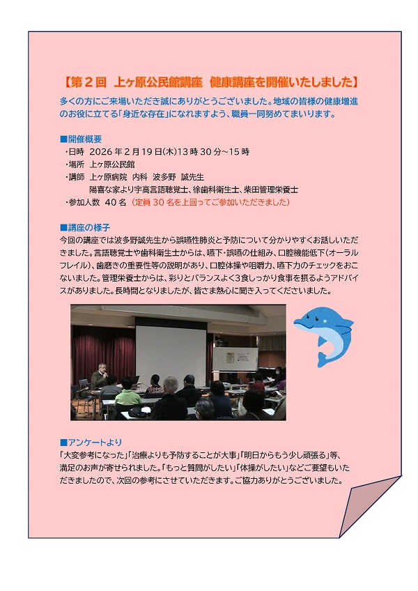- 【第2回 上ヶ原公民館講座 健康講座を開催いたしました】